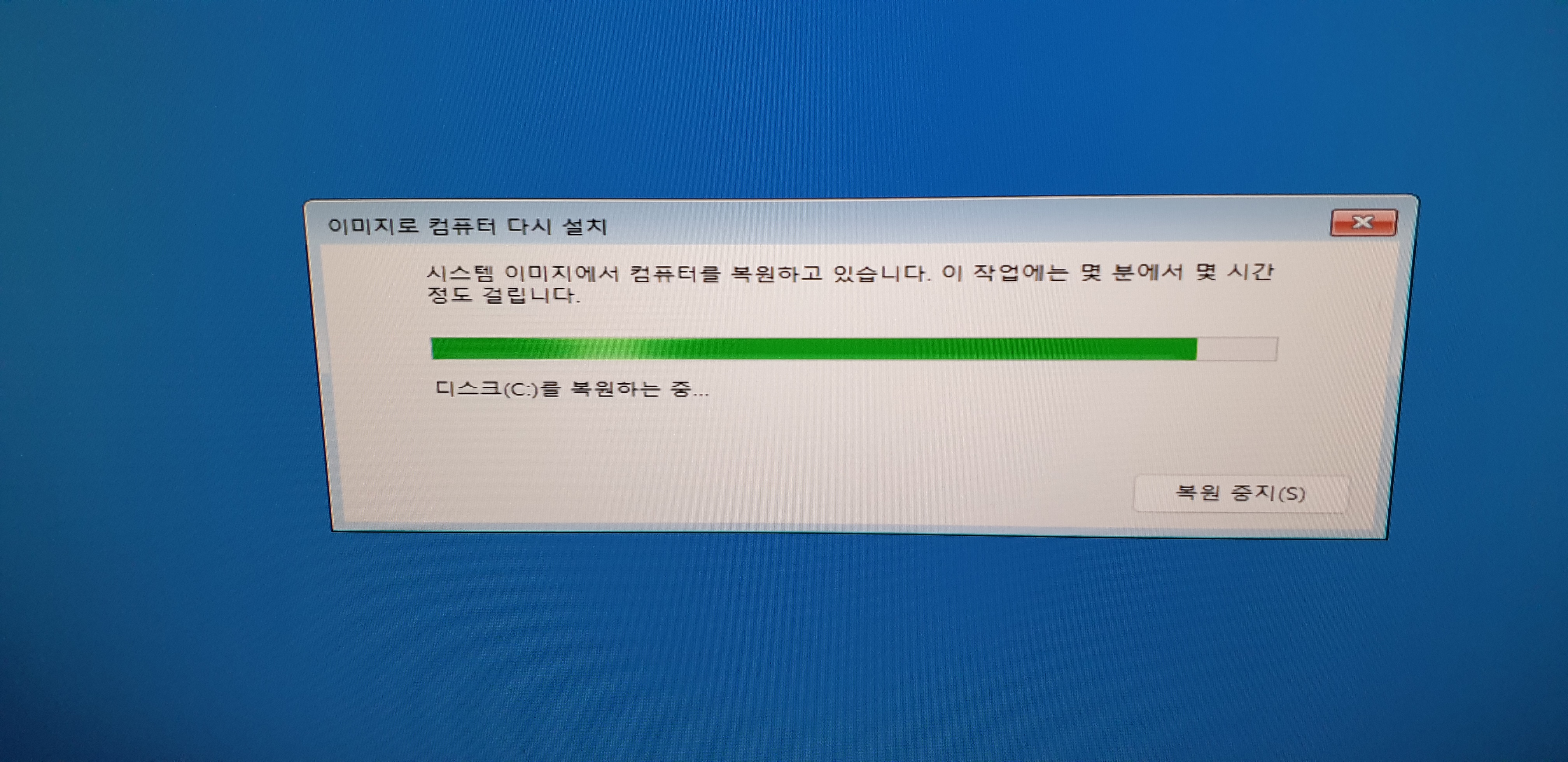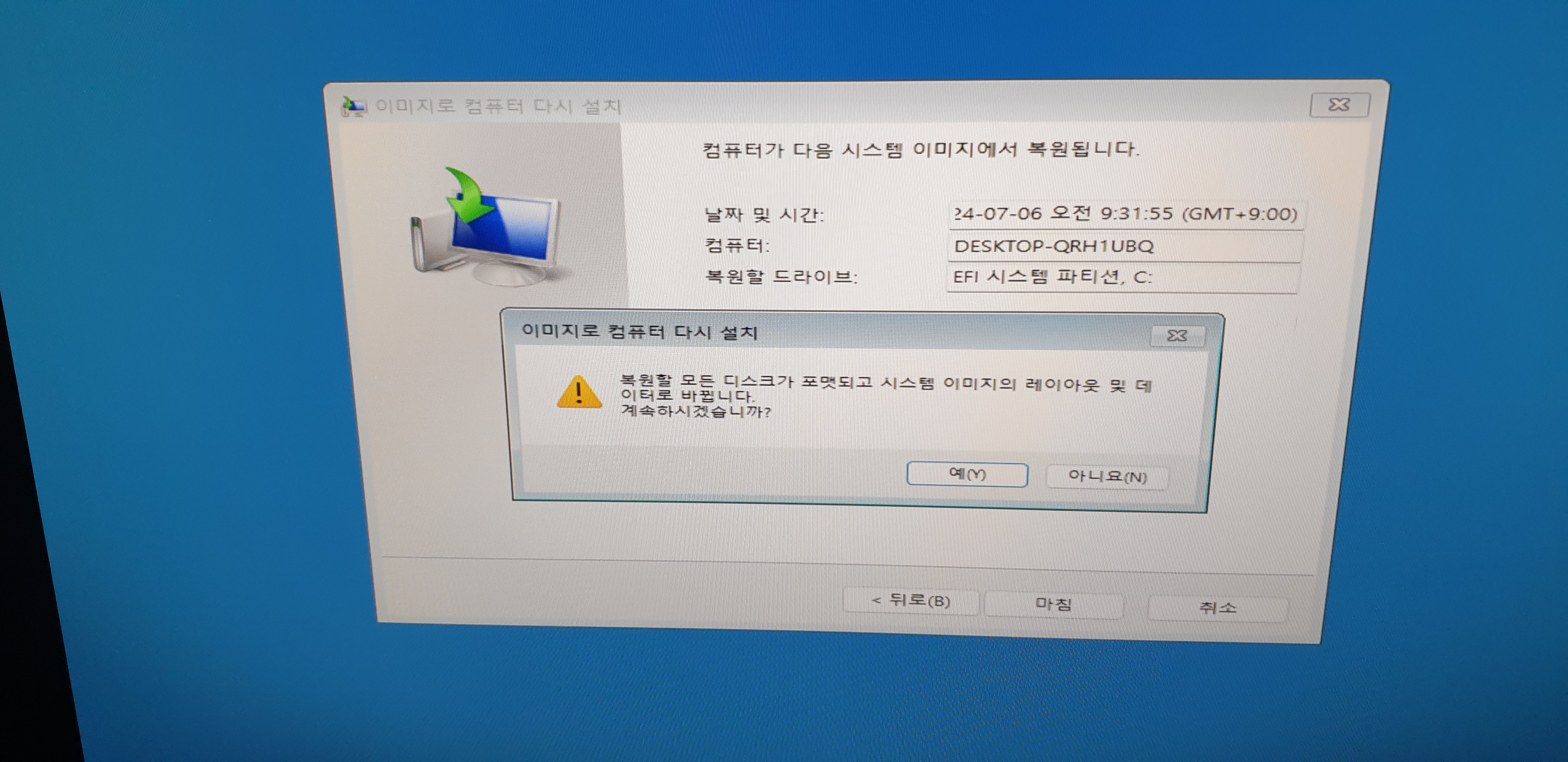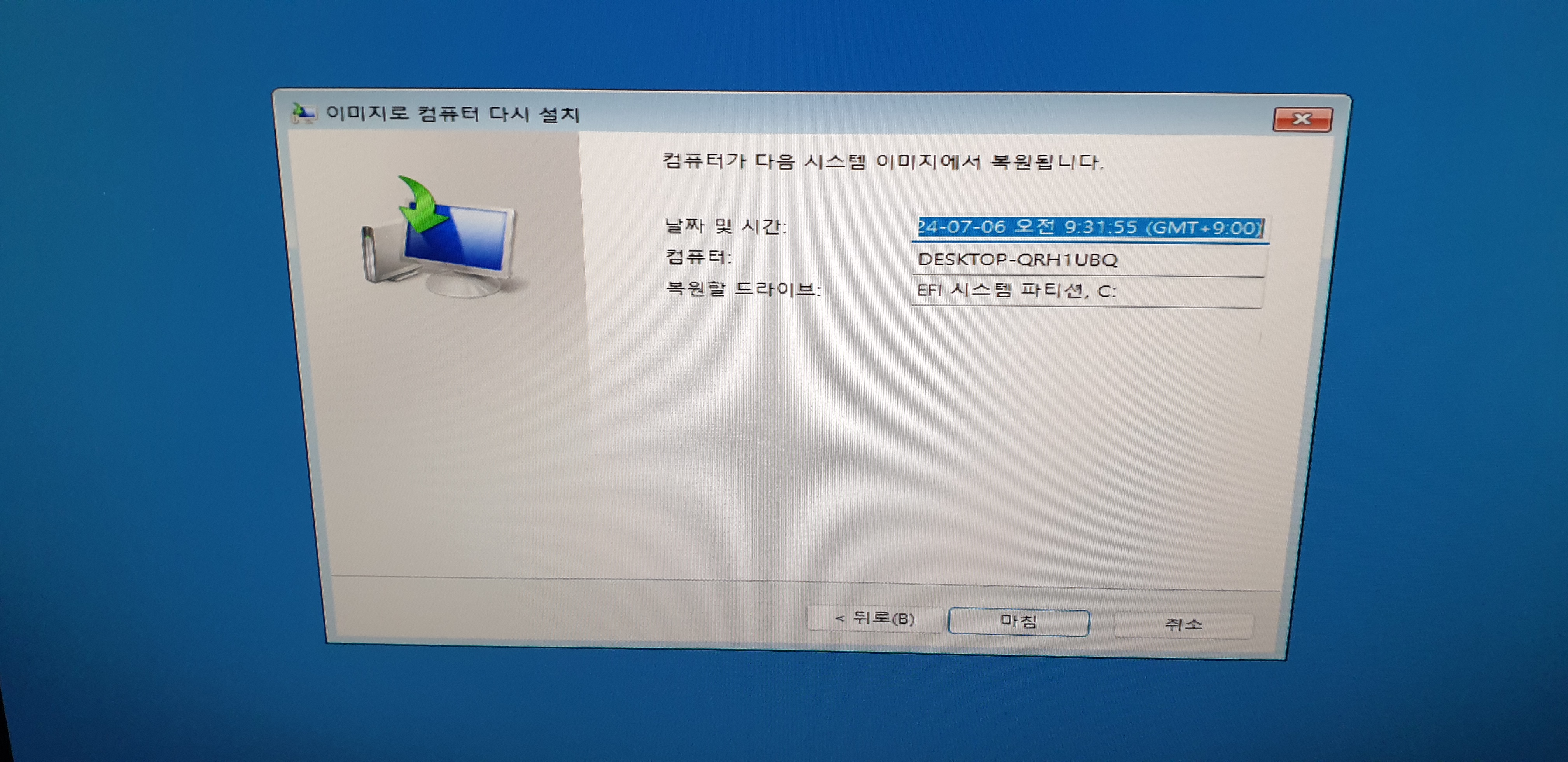 [마침] 버튼을 눌러서 복원을 진행합니다...