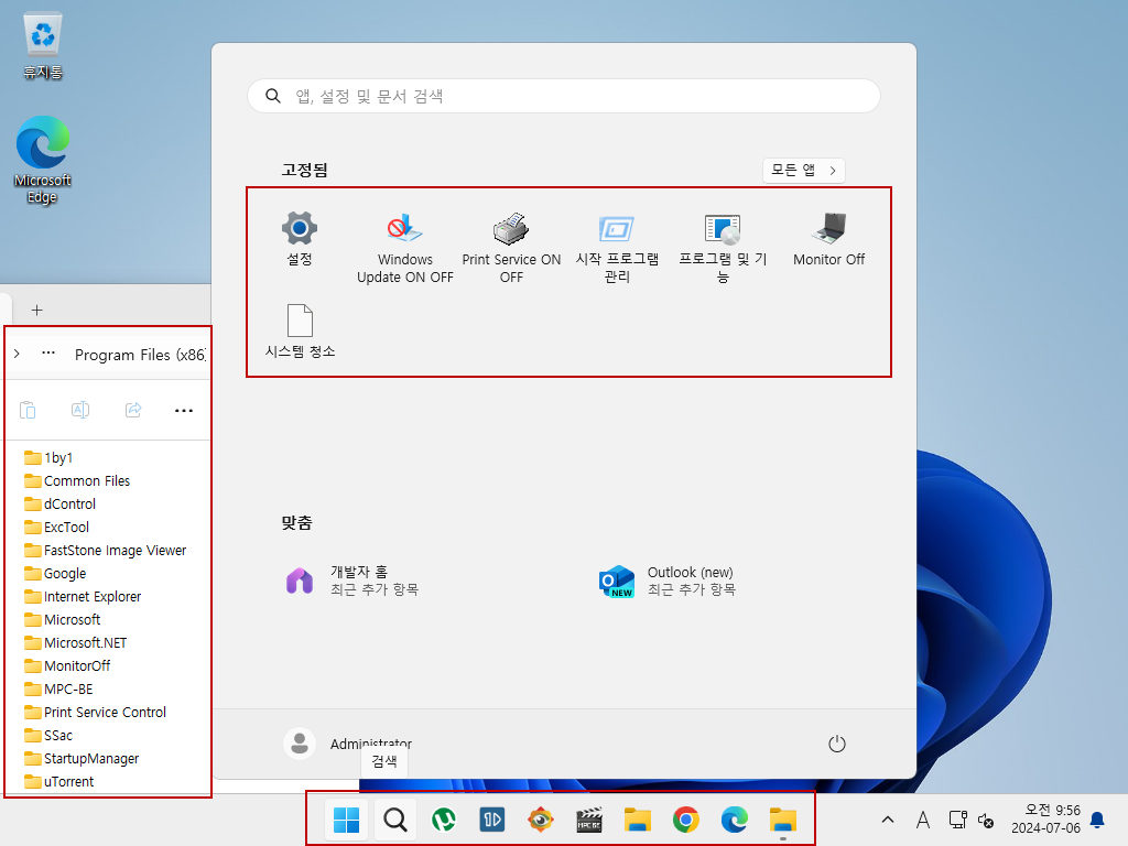 시작메뉴에 있는 항목들도 모두 제거해줍니다..