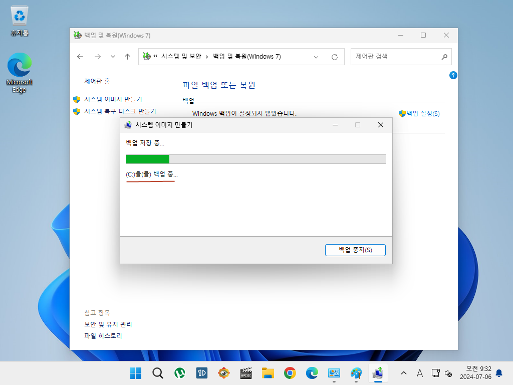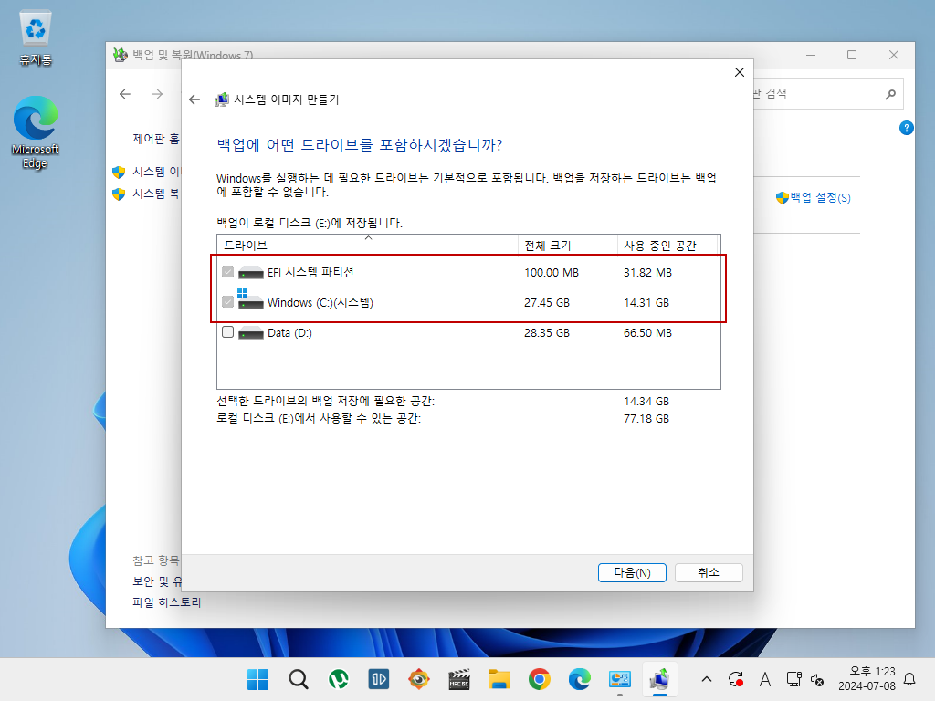 다시 윈도우로 부팅해서 윈도우를 백업해봤습니다.