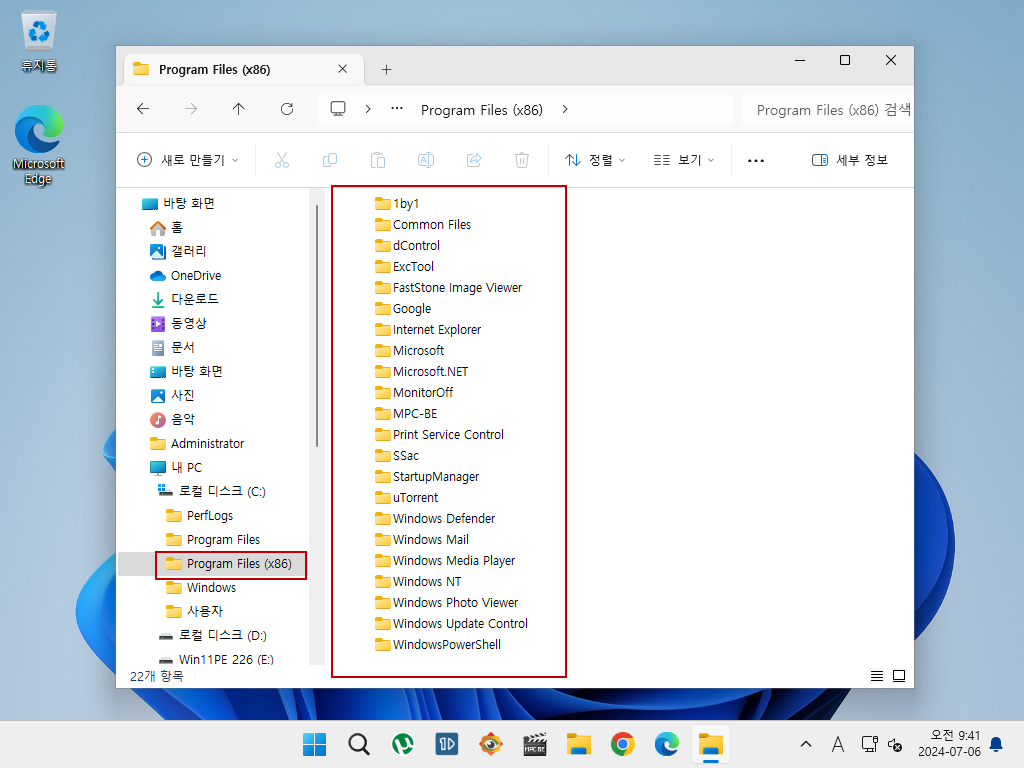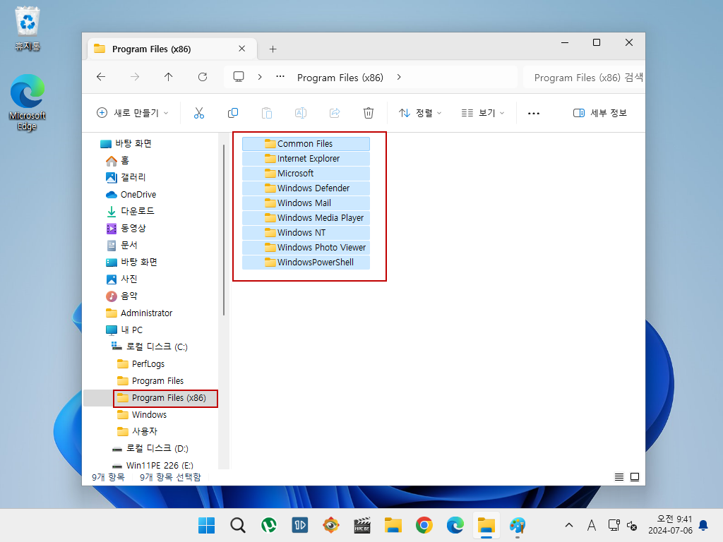 C:\Program Files (x86) 폴더의 삭제된 폴더도 복원되었습니다.