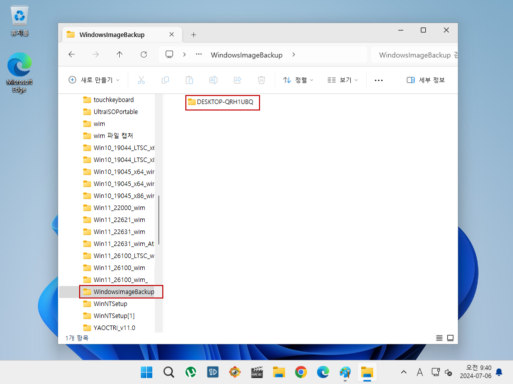 백업 디스크에 "WindowsImageBackup" 폴더 및에 아래와 같이 백업 폴더가 만들어졌습니다.