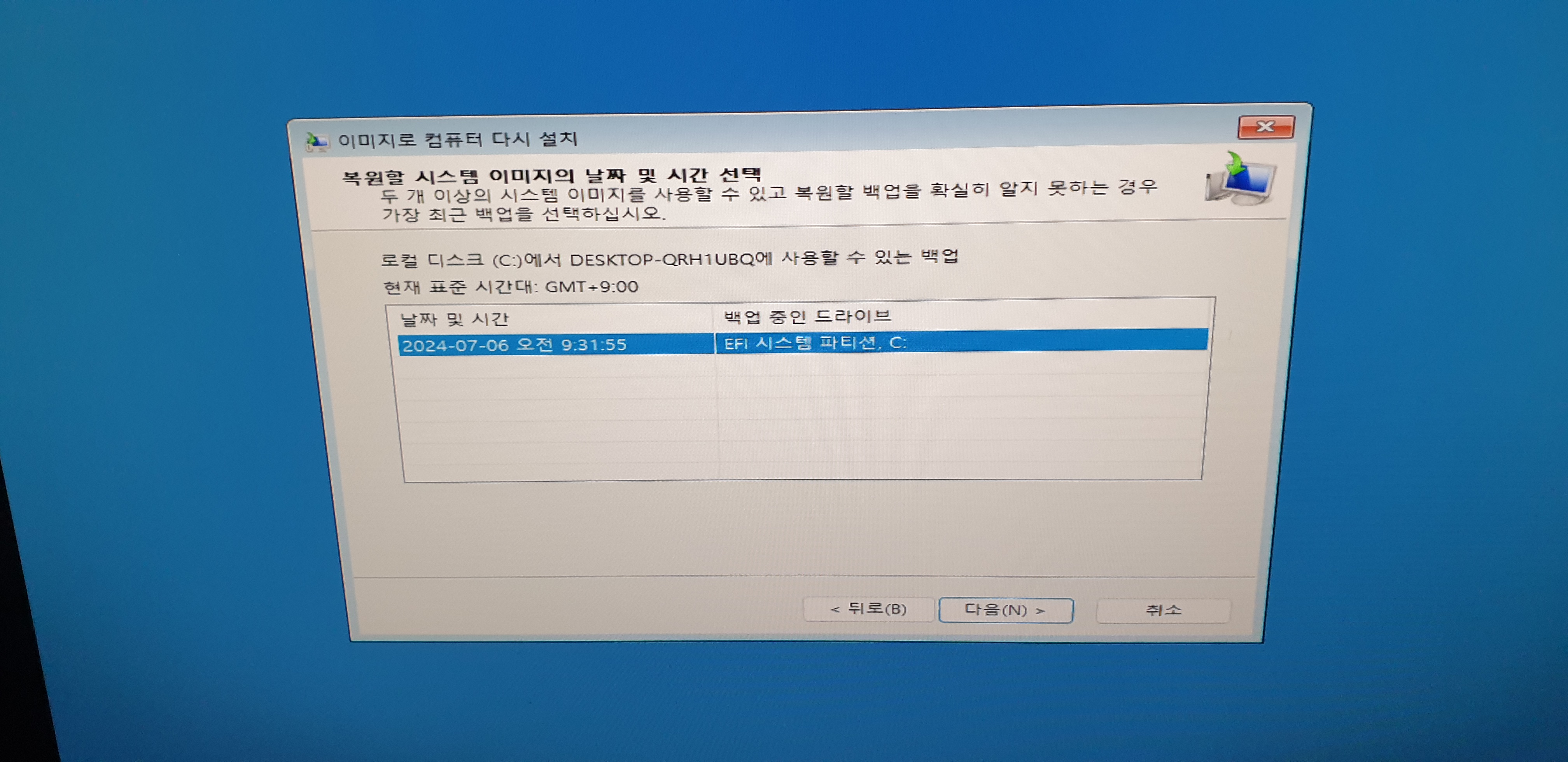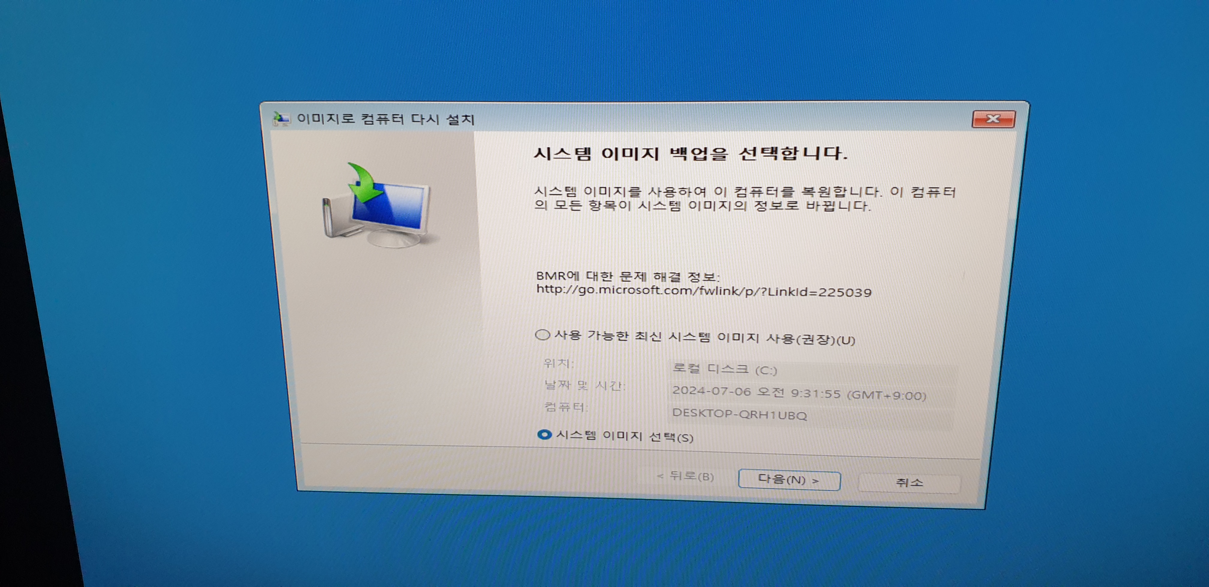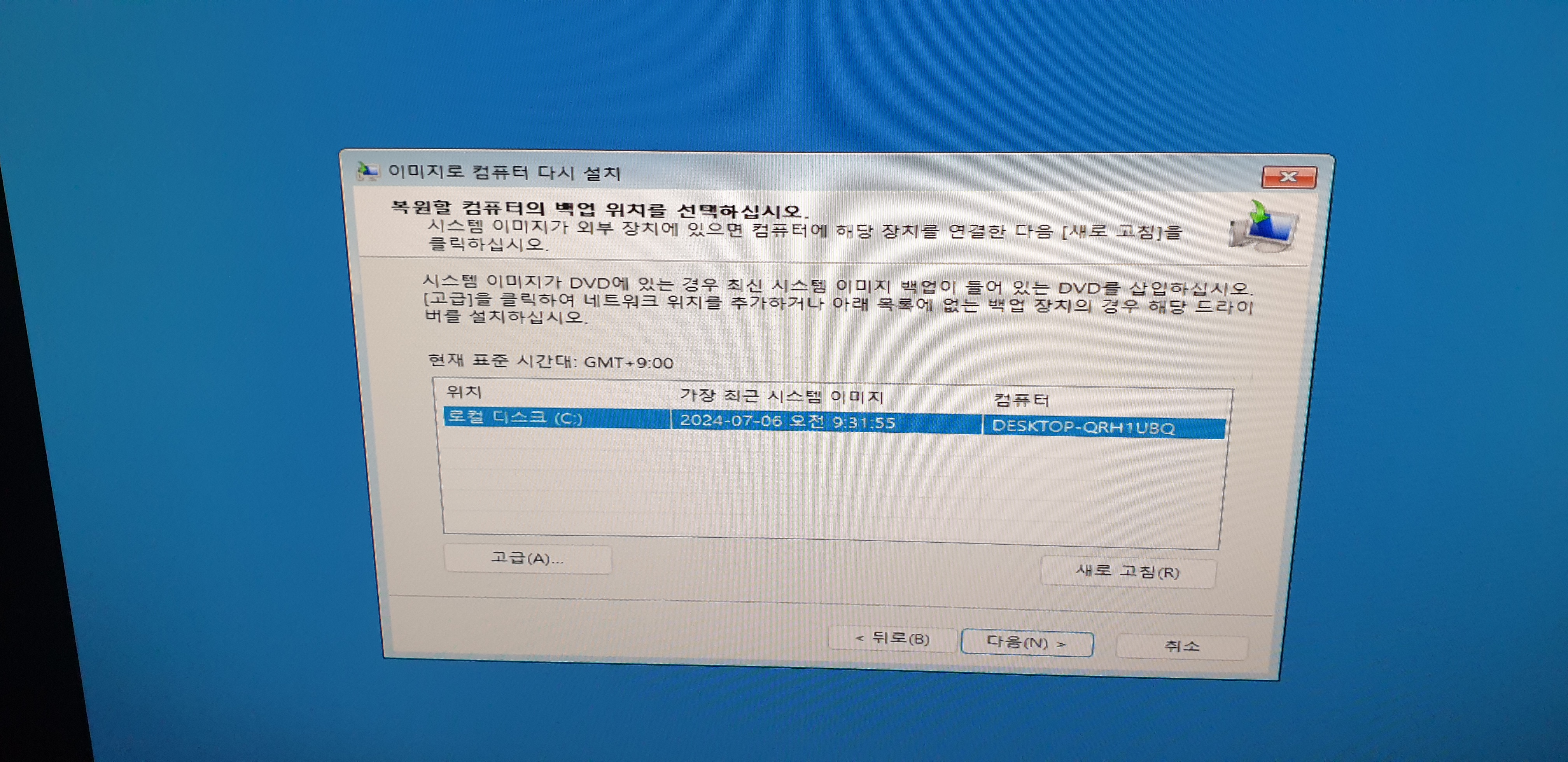 복원할 백업 위치가 C 드라이브로 나와있습니다..
