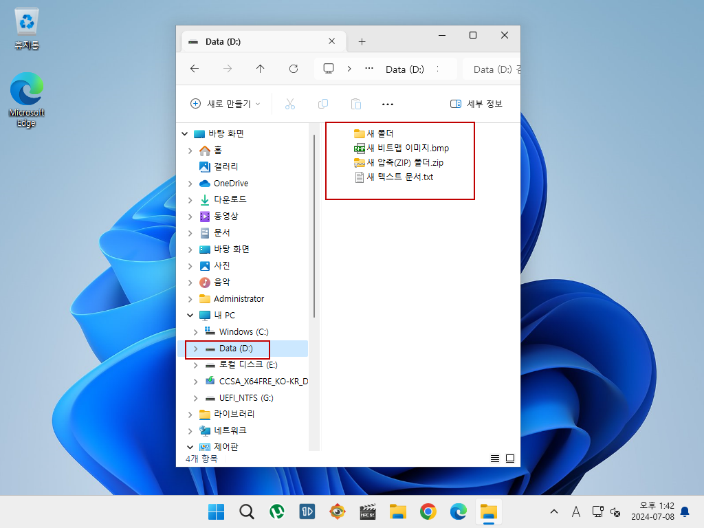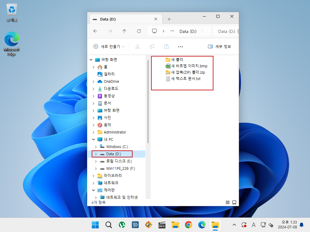 D 드라이브에는 몇개의 파일을 넣어뒀습니다...