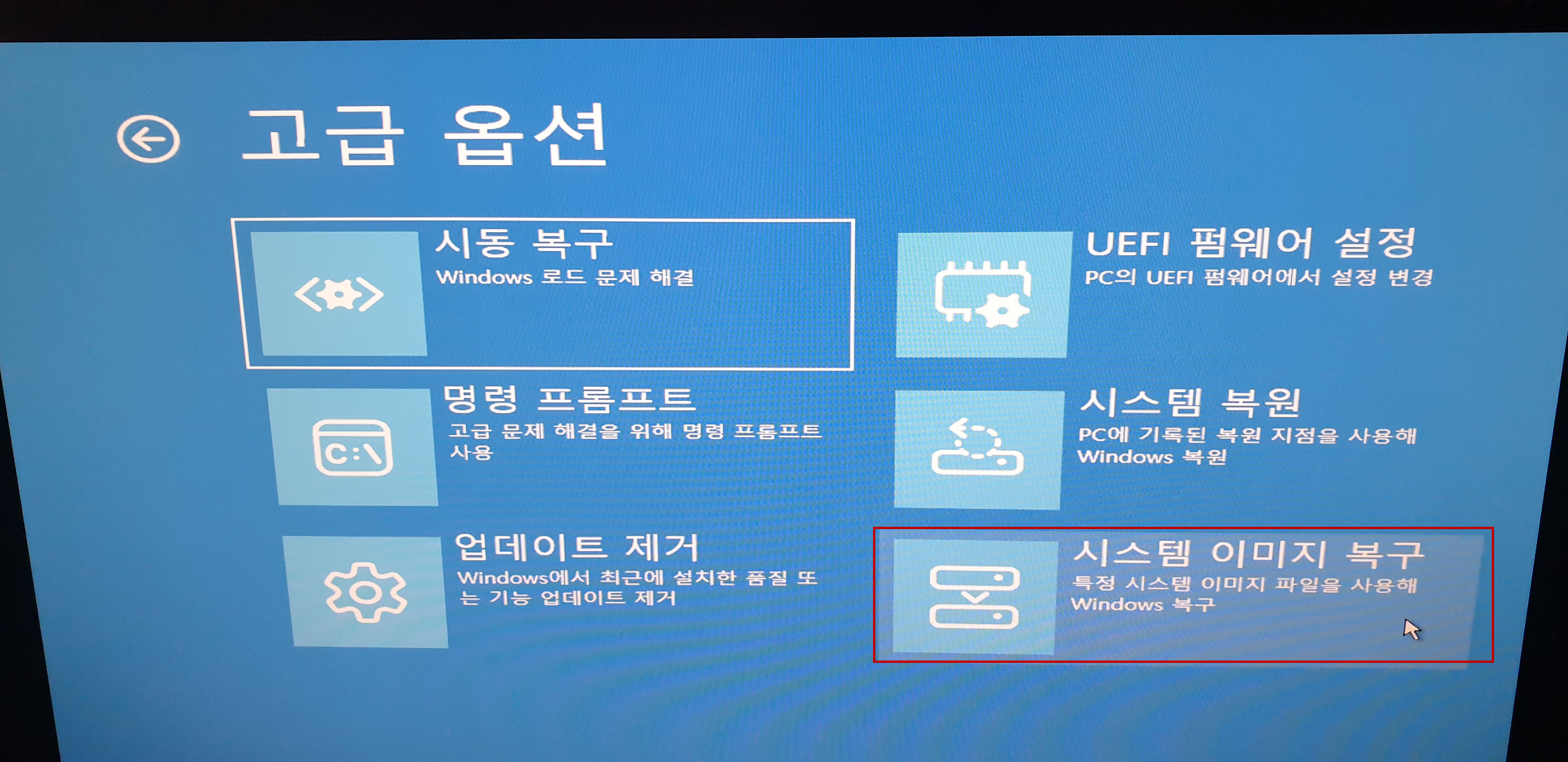 아래 화면이 뜨면 [내 PC 복구] 옵션을 선택해줍니다.