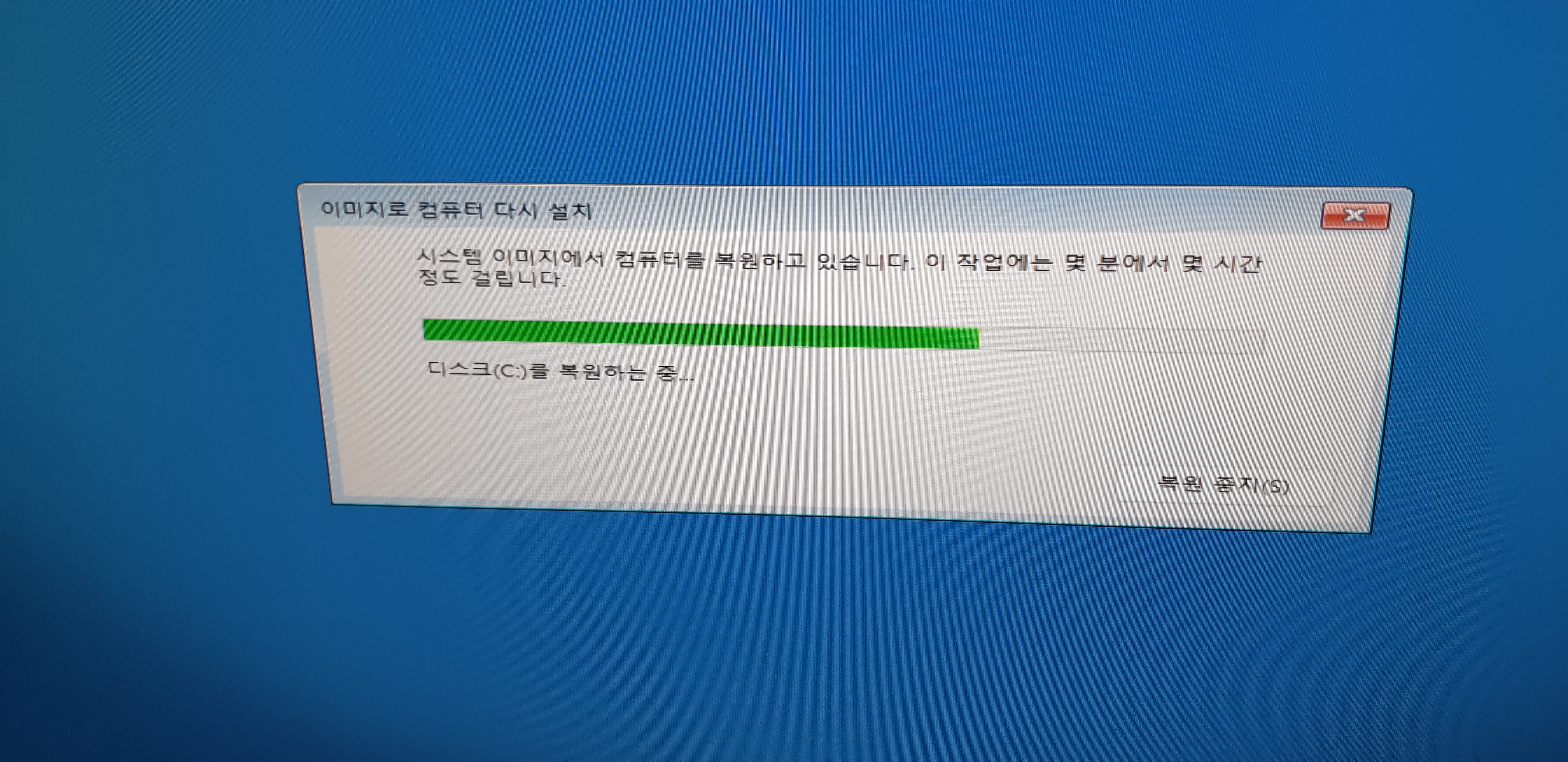 4. 새하드디스크에 기존 백업 이미지로 복구하는 방법 (기존 하드랑 용량이 같은 하드에 복원할 경우)