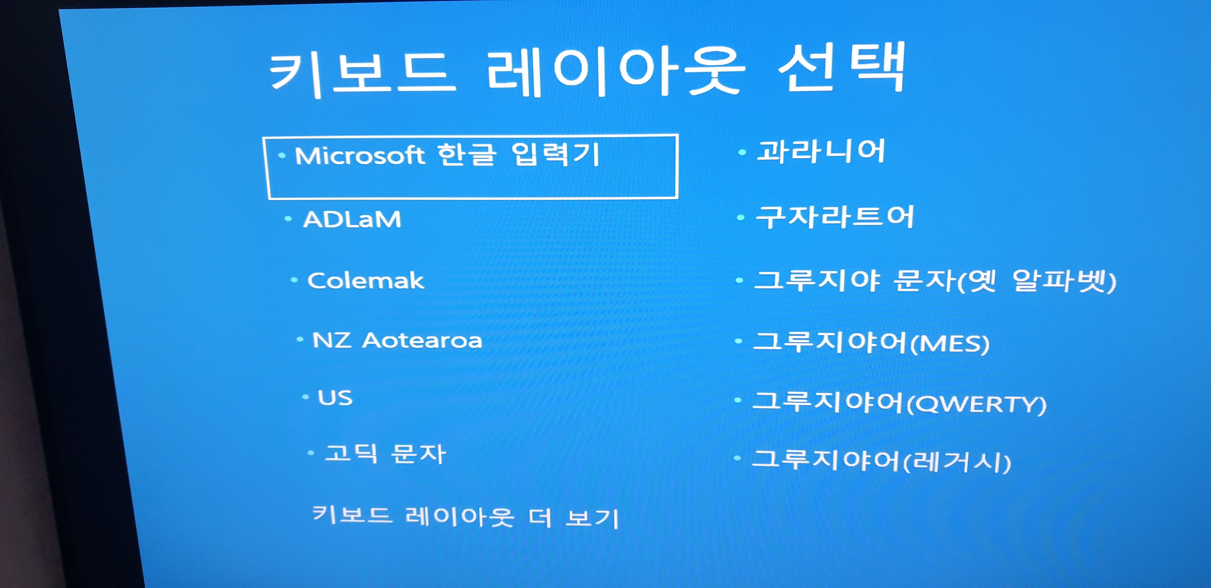 키보드 레이아웃을 기본값으로 선택해줍니다.