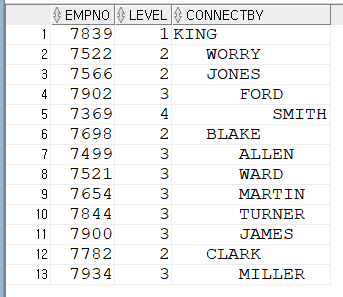 CONNECT BY PRIOR EMPID = MGR