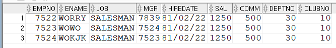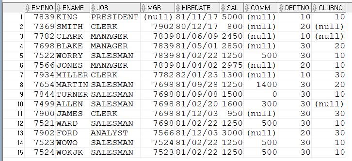 그래서 ORDER BY ENAME 을 추가했습니다.