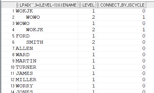 CONNECT_BY_ROOT(ENAME), CONNECT_BY_ROOT ENAME